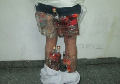 أحبط جمرك جسر الملك فهد محاولة بائسة لتهريب كمية من الخمور بلغ عددها (14) زجاجة مخبأة أسفل الثوب الذي يرتديه المهرب بعد تثبيتها بشريط لاصق.