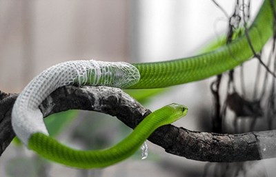 اعتبرت مصورة نفسها محظوظة لأنها تمكنت بالصدفة من توثيق لحظة نادرة لأفعى سامة من نوع المامبا الخضراء تقوم بتغيير جلدها في غضون 5 دقائق فقط.