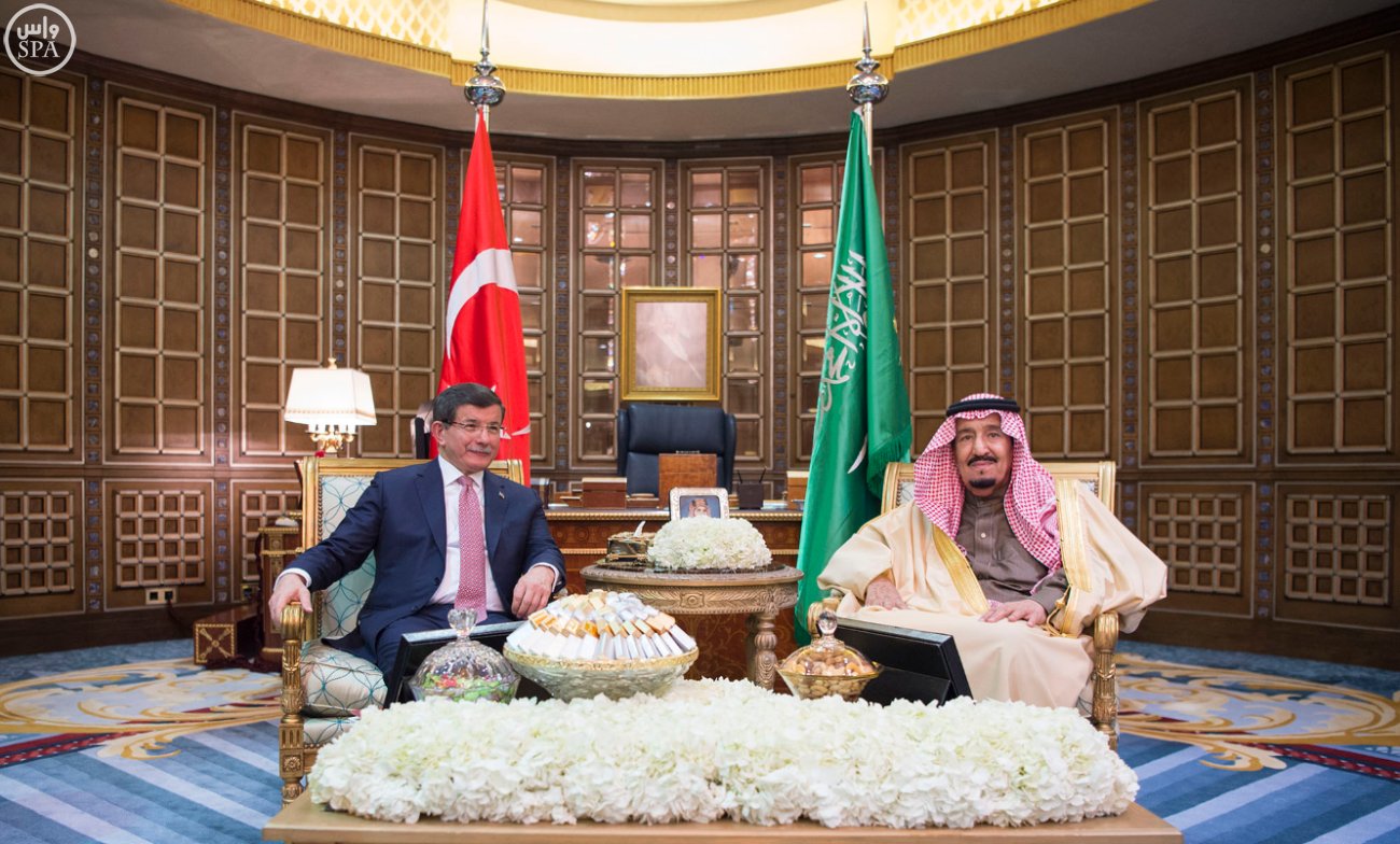 عقد خادم الحرمين الشريفين الملك سلمان بن عبدالعزيز في قصره اليوم، جلسة مباحثات رسمية، مع رئيس وزراء تركيا أحمد داود اوغلو.
