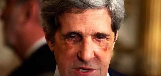 بالفيديو..سيدة تضرب جون كيري بالحذاء وتصرخ فى وجهه : أنت من صنعت “داعش”