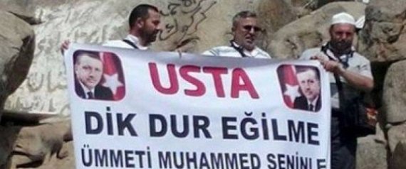 بعد أيام على هتافات وتكبيرات لمعتمرين شاهدوا رئيس الوزراء التركي أحمد داود أوغلو في بيت الله الحرام، رفع ثلاثة أتراك صورة للرئيس رجب طيب أردوغان، في غار حراء الذي نزل فيه الوحي على النبي محمد صلى الله عليه وسلم.