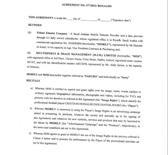 شركة سعودية تمنح رونالدو 1،1 مليون يورو مقابل كلمتين فقط !! (وثيقة)