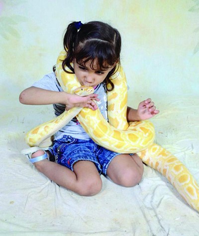هداية المنشاد .. أصغر طفلة سعودية تروض أضخم الأفاعي (صور)