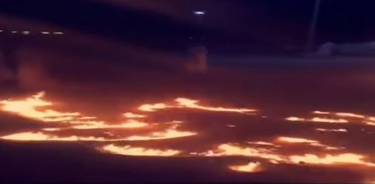 أظهر مقطع فيديو قيام أهالي هجرة يبرين بمحافظة الأحساء بإشعال النيران بالطريق إلى مكان الاحتفالية أقاموها لاستقبال ضيفهم الشاعر القطري محمد بن الذيب.