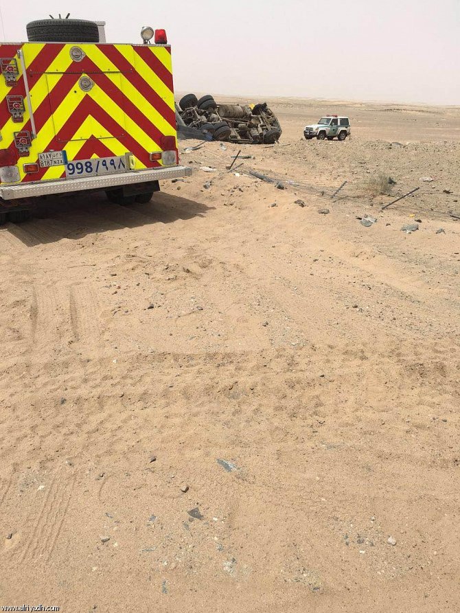 مدني ظلم يُنقذ سائق شاحنة انقلبت مركبته على طريق الرياض