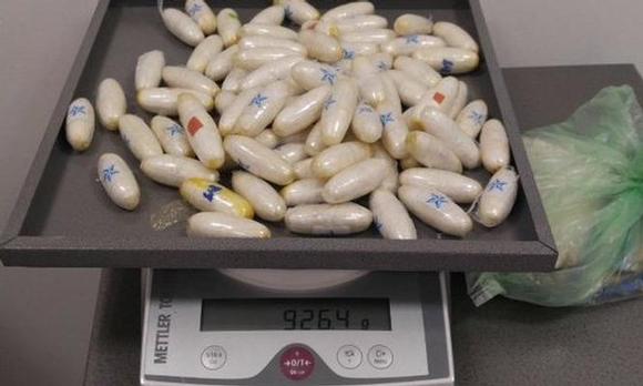 أحبط جمرك مطار الأمير محمد بن عبدالعزيز بمنطقة المدينة المنورة, 936.9 جراماً من مادة الكوكائين، عُثر عليها مُخبأة في أحشاء أحد الركاب القادمين إلى المملكة عبر المطار.