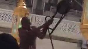 تناقل مستخدمون سعوديون لمواقع التواصل الاجتماعي، مقطع فيديو ، يظهر إفريقياً يقوم بتكسير مصابيح الإضاءة بالحرم المكي ويعتدى بالضرب على المعتمرين ، فيما تداولوا مقطعاً آخر يظهر لحظة محاصرة رجال أمن الحرم لهذا الشخص الإفريقي ، الذى تردد أنه نيجري ، والقبض عليه.
