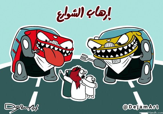 “إرهاب السوارع” .. كاريكاتير لاذع يسخر من فوضى السيارات بطرق المملكة