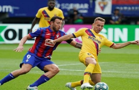 برشلونة يقتنص الصدارة بثلاثية في إيبار