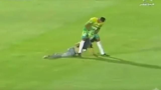 فيديو .. حارس مغربي يتعامل بوحشية مع مشجع اقتحم الملعب