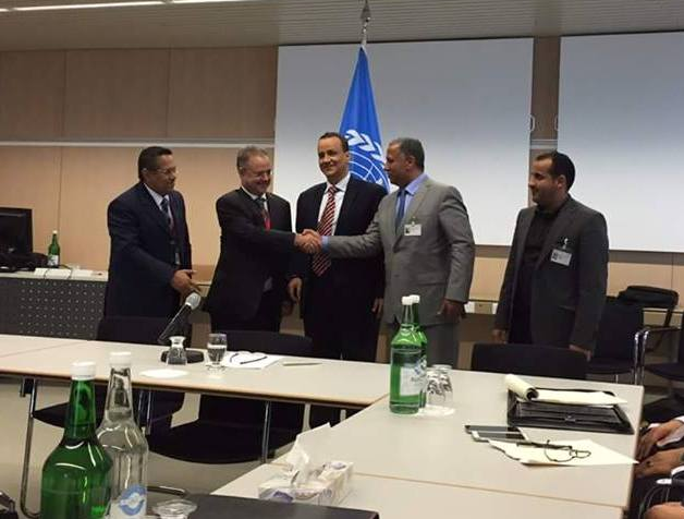 بالصور .. مباحثات جنيف تنتهي بمصافحة بين وفدي الشرعية والانقلاب