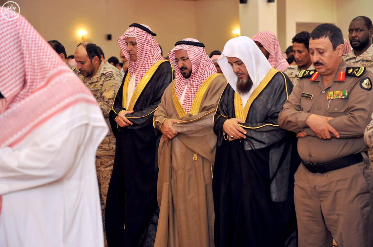 أمير الباحة وجموع من المواطنين يؤدون صلاة الميت على الشهيد العسيري