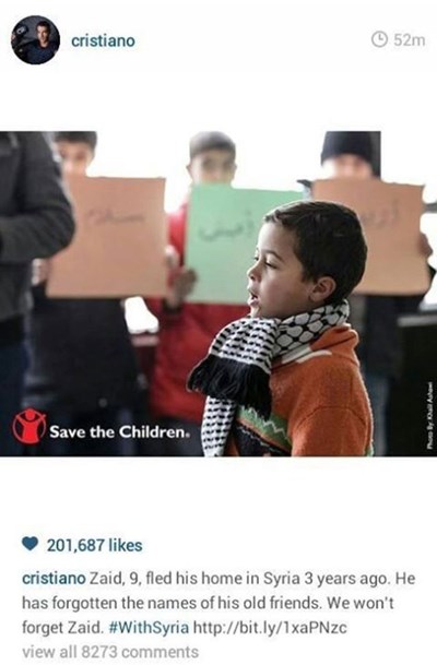 صورة مؤثرة..رونالدو يدعو العالم للتضامن مع هذا الطفل السوري