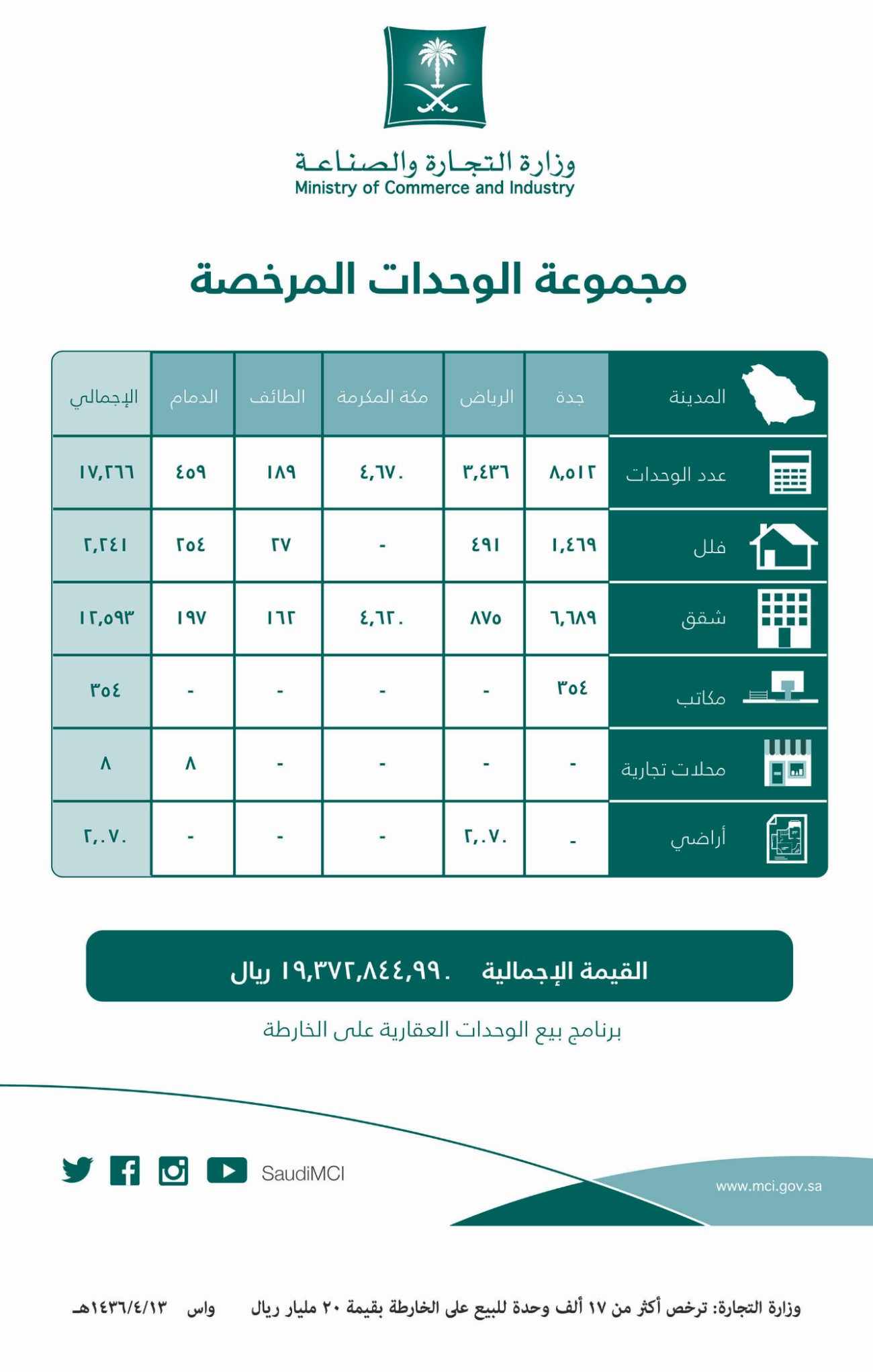 التجارة : أكثر من 17 ألف وحدة عقارية مرخصة بمختلف المناطق