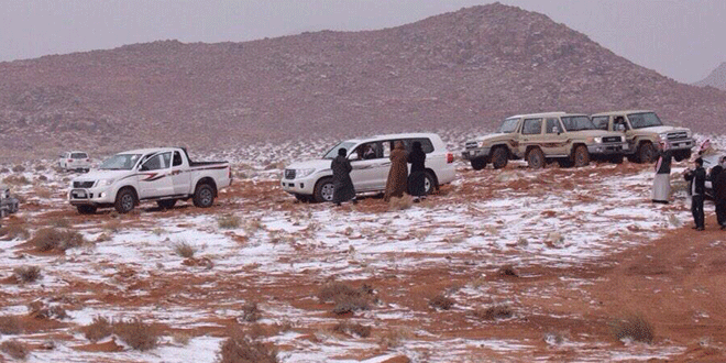 الثلوج تزين مرتفعات تبوك والجوف باللون الأبيض (فيديو وصور)