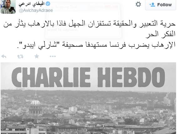 المتحدث باسم جيش الاحتلال الإسرائيلي يصف المجلة المسيئة للرسول بـ” منبر للحقيقة ” !