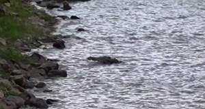 مشاهد مذهلة للحظة اصطياد تمساح لآخر والتهامه (فيديو)