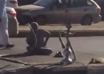 سعودي يدخن الشيشة وسط شارع عام فى تبوك ويثير أزمة مرورية (فيديو)