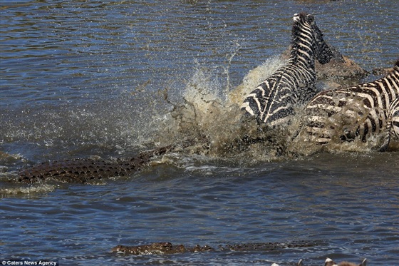 بالصور .. مشاهد مدهشة لحمار وحشي ينجو بأعجوبة من بين فكي تمساح