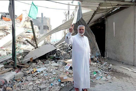 هنية يعود إلى منزله المدمر بغزة : الحمد لله ذهب البيت وبقى الوطن (صور)