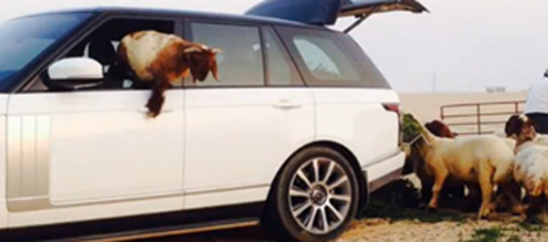 بالفيديو .. مواطن يحول “رانج روفر” 2014 إلى مأوى للأغنام ومخزن للبرسيم