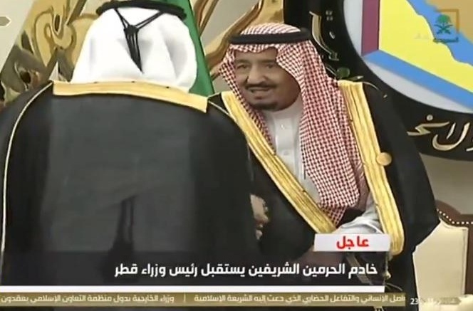 شاهد.. لحظة استقبال خادم الحرمين الشريفين لرئيس وزراء قطر بقصر الصفا