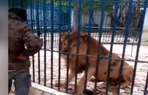 شاهد.. أسد يعض يد عامل بحديقة حيوانات
