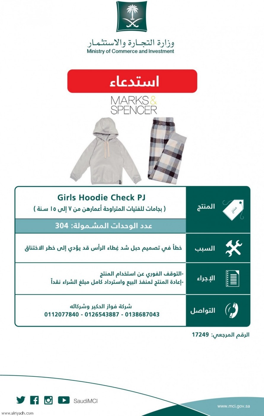 وزارة التجارة تستدعي «بجامات» بسبب خطر الاختناق