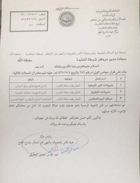 «هيئة مكة» تسجل أول بلاغ للشرطة لمخالفة نظام «العمل وقت الصلاة»