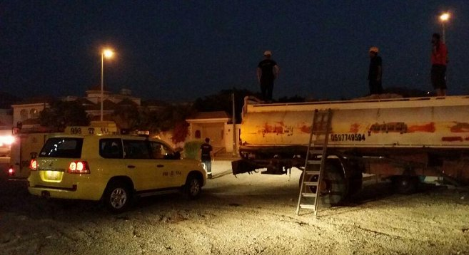 إخراج عامل بعد سقوطه في خزان شفط للمياه