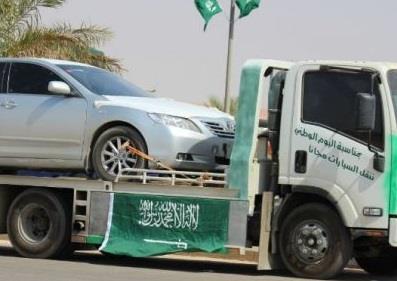 شاب ينقل السيارات مجاناً على “سطحة” احتفالاً باليوم الوطني ومغردون يمتدحون مبادرته