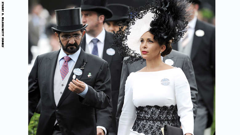 صور مثيرة للشيخ محمد بن راشد وزوجته أثناء حضورهما سباقاً للخيل فى بريطانيا