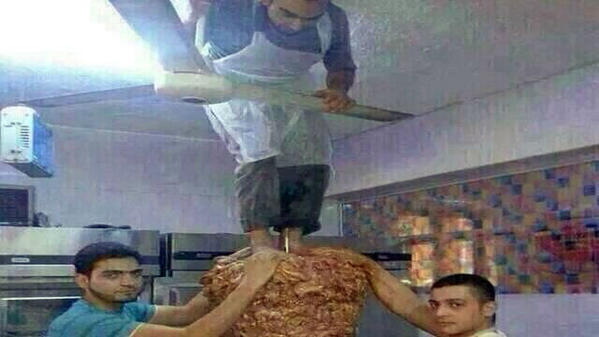 أمانة الرياض تبحث عن 3 عمال داسوا بأقدامهم على “الشاورما” (صورة)