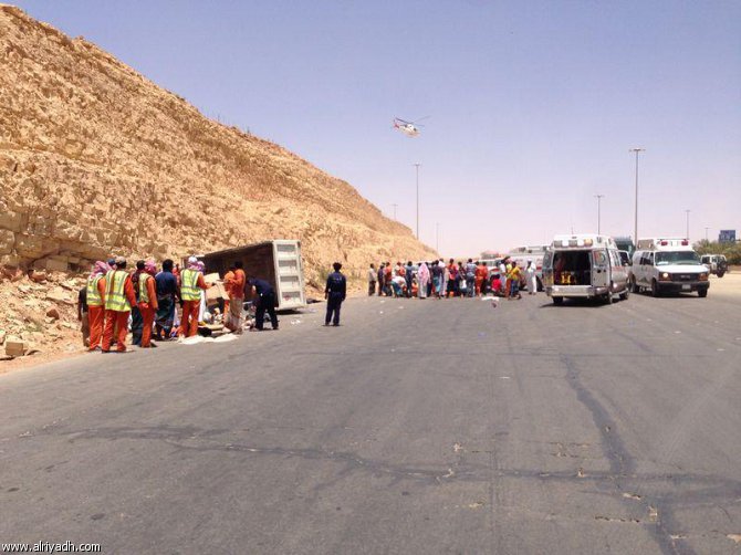 انكفاء شاحنة عمالة نظافة يصيب 11 عاملا ببريدة