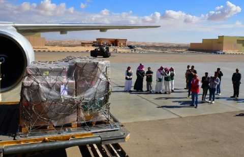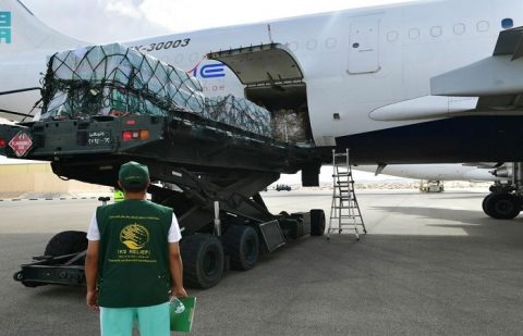 الطائرة الإغاثية السعودية السابعة لإغاثة شعب فلسطين تصل غزة