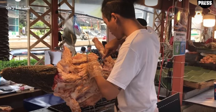 فيديو صادم.. سلخ تمساح وتقديم لحمه المشوي للزبائن في مركز تجاري