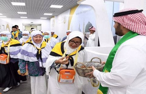 ورود وتمور وحلوى في استقبال الحجاج الاندونسيين بالمدينة المنورة