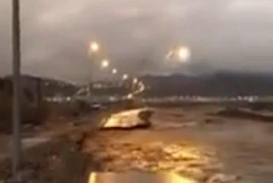 بالفيديو.. مشهد مرعب لسيول المخواة يظهر لحظة سقوط أعمدة الإنارة