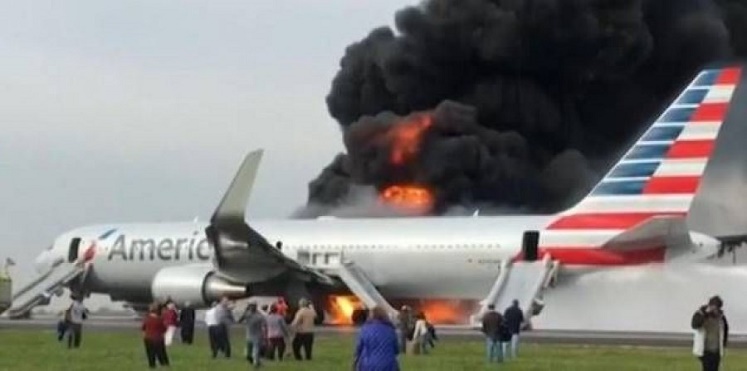 بالفيديو.. رعب وصراخ بين ركاب طائرة أمريكية أثناء احتراقها