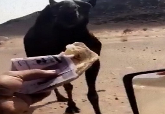 التحقيق في مقطع إطعام ناقة حزمة نقود (فيديو)