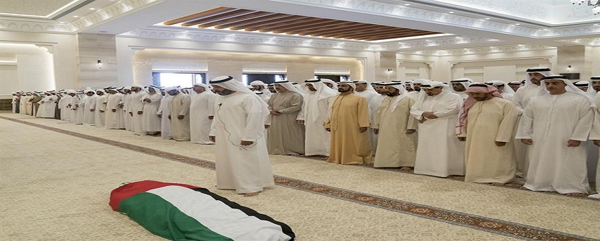بن راشد وبن زايد يؤديان الصلاة على جثمان والدة رئيس الإمارات