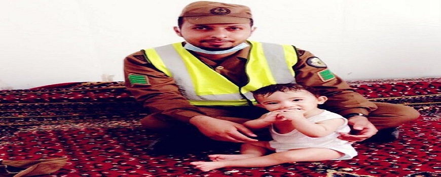 رجل أمن يرعى طفلا توفيت والدته في الحج
