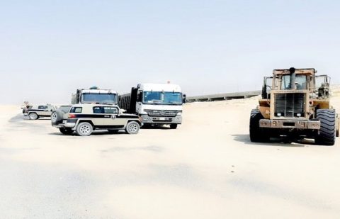 ضبط 2 شيول وثلاث شاحنات أثناء تجريف الأراضي ونهل الرمال بالدمام
