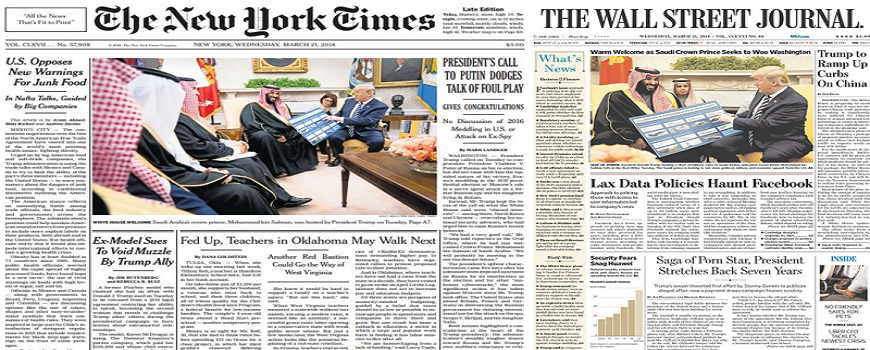 ولي العهد يتصدر صفحات كبريات الصحف الأمريكية