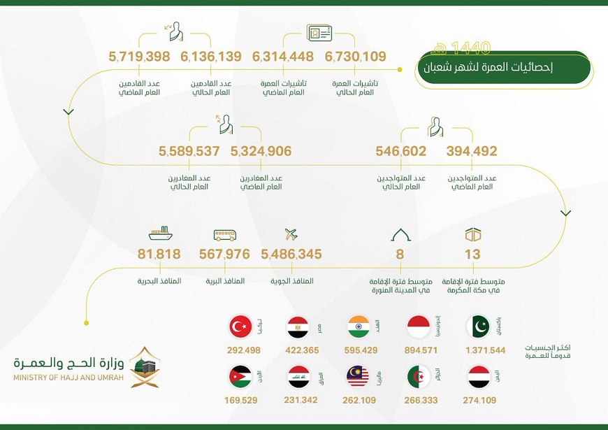 ارتفاع أعداد المعتمرين والغالبية لإناث