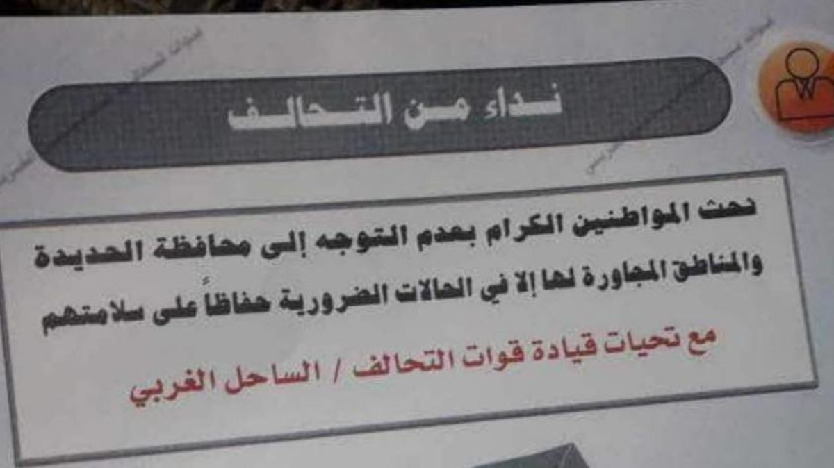 منشورات للتحالف تحذر المواطنيين اليمنيين من التوجه للحديدة