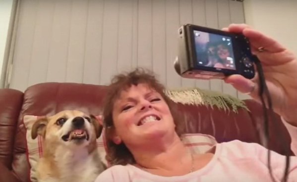 بالفيديو .. كلب “يبتسم” لالتقاط “سيلفي” مع صاحبته