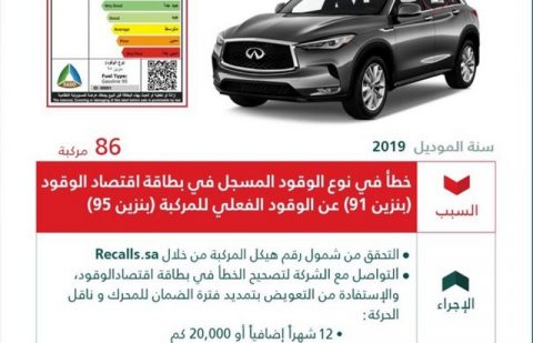 “التجارة”: حملة تصحيح لـ 86 مركبة QX50 INFINITI 2019