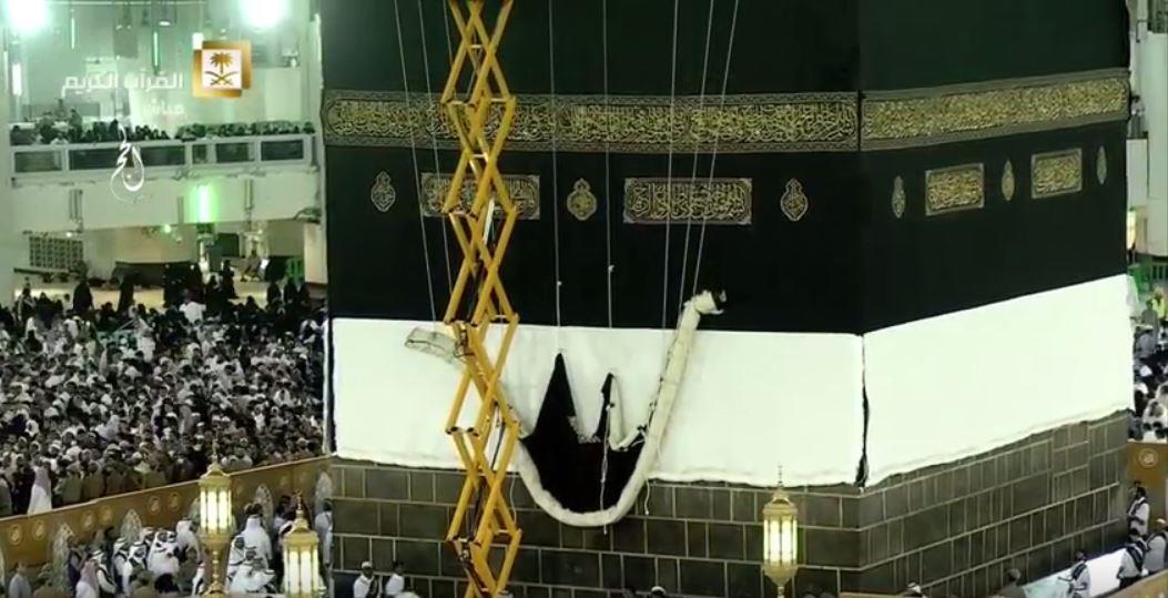 بالفيديو والصور.. الكعبة المشرفة تكتسي بثوبها الجديد فجر اليوم