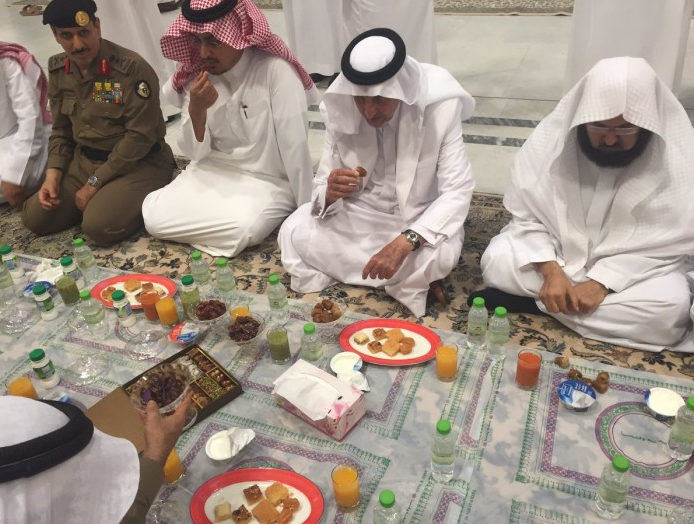 بالصور.. أمير مكة يشارك مسؤولي الحرم طعام الأفطار فى لفتة أثارت إعجاب السعوديين